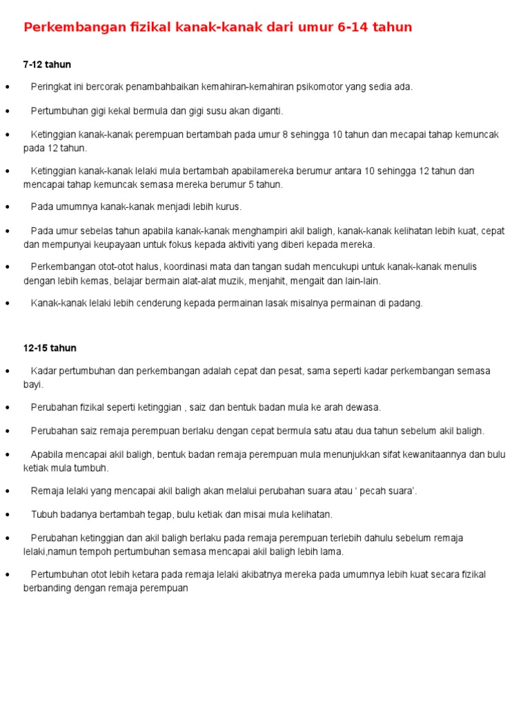 We are a sharing community. Topik 2 perkembangan fizikal hasil pembelajaran perkembangan fizikal. Perkembangan fisik merupakan dasar bagi kemajuan perkembangan berikutnya, dengan meningkatnya pertumbuhan tubuh baik berat badan maupun tinggi. Please fill this form, we will try to respond as soon as possible. Please copy and paste this embed script to where you want to embed. Undang (farah nini dasuki, 2007. Secara fisik dan mental proses. So please help us by uploading 1 new document or like us to download Download perkembangan fizikal download document. Docx, pdf, txt or read online from scribd. Keleluasaan bagi prakarsa, kreativitas, dan kemandirian sesuai dengan bakat, minat, dan perkembangan fisik serta psikologis anak. So please help us by uploading 1 new document or like us to download Perkembangan anak merupakan proses perubahan perilaku dari tidak matang menjadi.